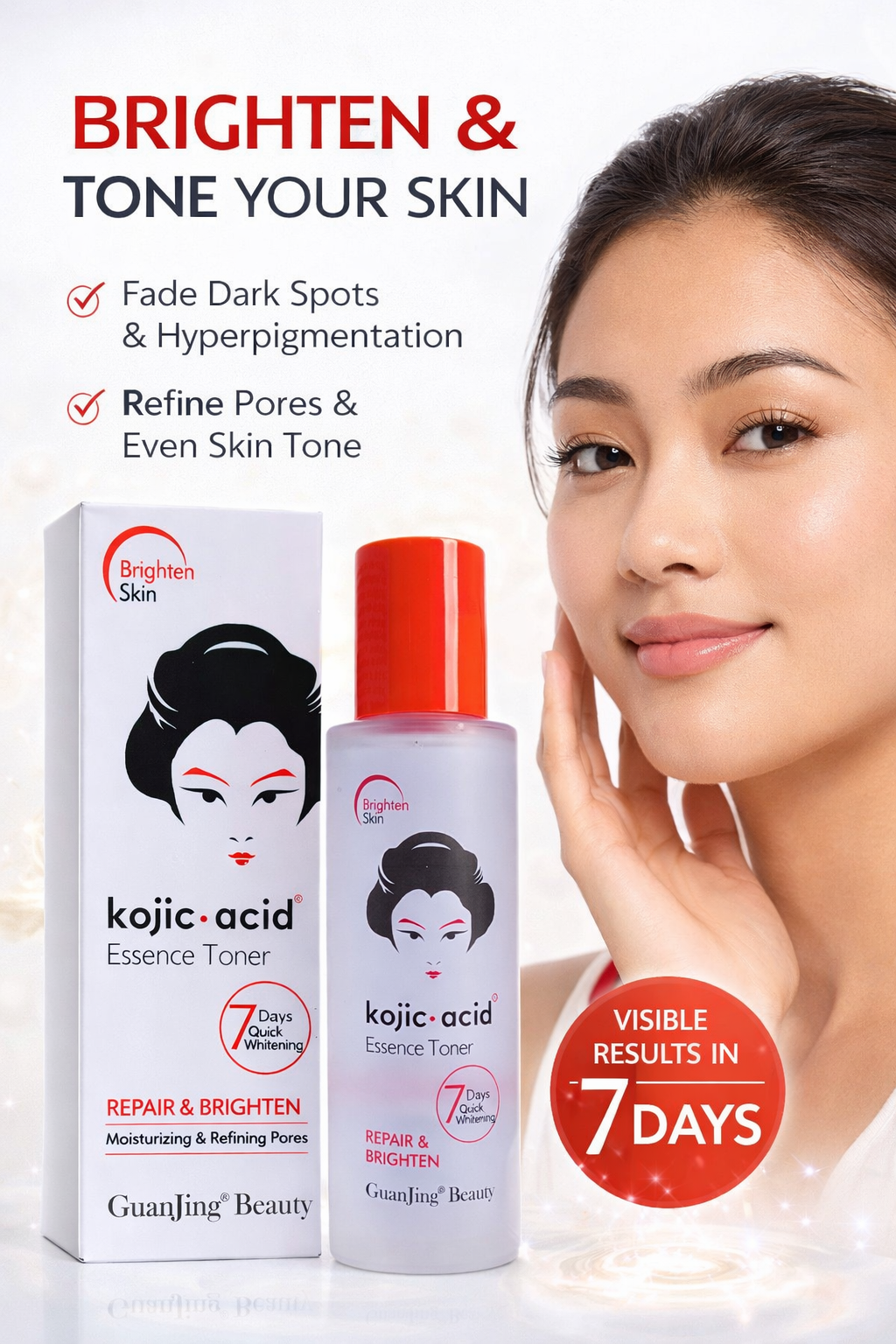 Transform your skin with Kojic Acid Essence Toner! This powerful toner boasts brightening, hydrating, and anti-aging properties, leaving your skin with a radiant and youthful glow. With Kojic Acid as the main ingredient, it effectively targets hyperpigmentation and uneven skin tone, giving you a flawless complexion. Experience the ultimate skincare routine with our Kojic Acid Essence Toner today!